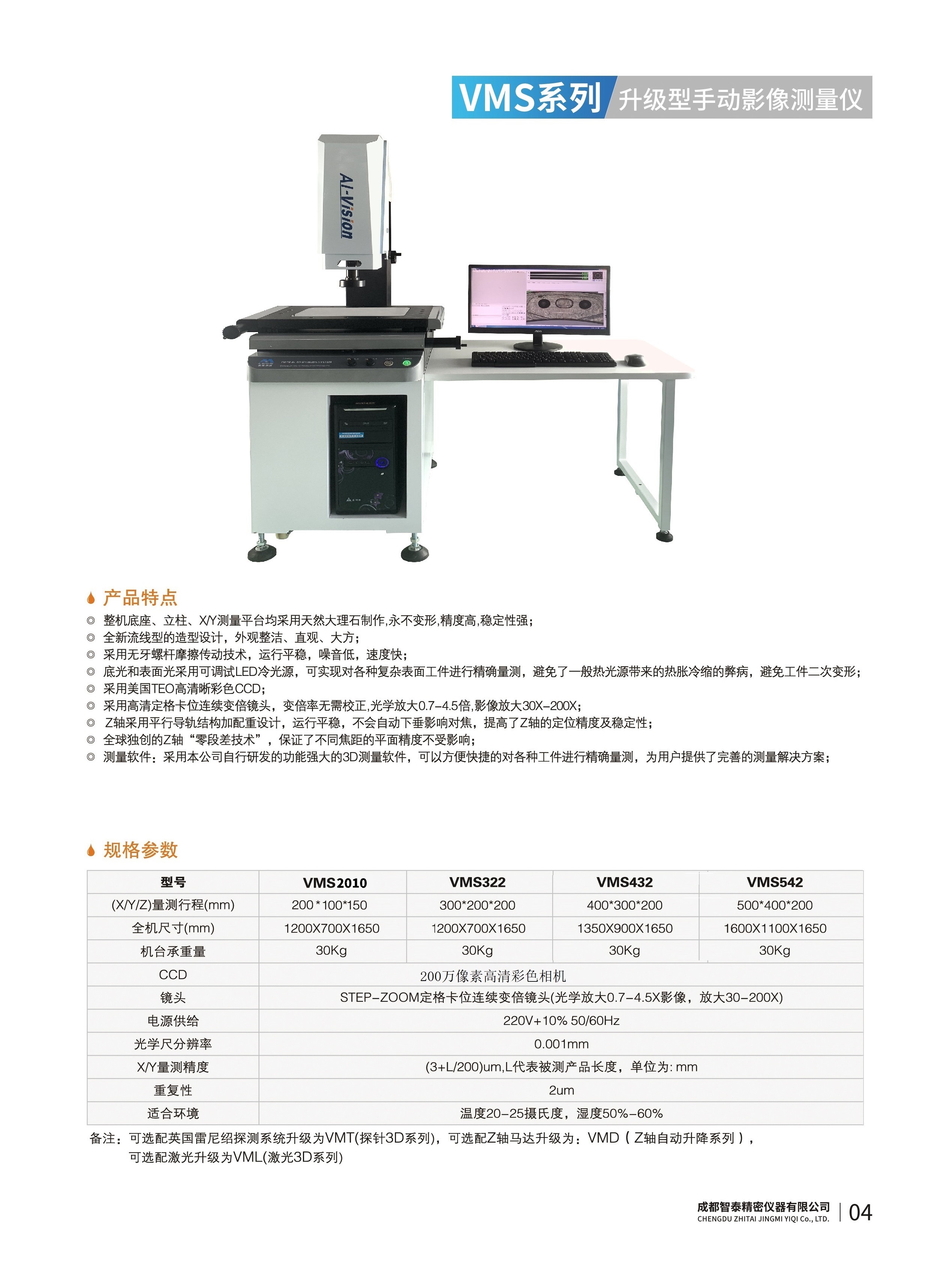 成都智泰精密儀器有限公司專注于精密測量儀器,人工智能,智能制造領域,專業從事智能視覺自動化檢測解決方案的貿易型企業。公司成立于2011年,位于天府之國成都,現有行業精英十余人,辦公倉儲面積200余平米。 公司主要產品為精密光學影像測量儀,精密輪廓形狀測量儀,精密機器人定位系統,精密智能視覺尺寸檢測儀器,精密表面缺陷智能檢測設備,工業工程特種機器人。 公司憑借過硬的技術實力和產品方案,率先進入智能視覺自動化檢測領域,推廣以精密智能視覺自動化檢測為基礎的機器人自動化應用,公司不斷整合上下游的資源,擁有巨大的全產業鏈優(yōu)勢。客戶群體覆蓋了我國精密制造業的多數領域,包括航空、航天、軍工、汽車、新能源、光伏、食品,精密電子、精密機械、模具、PCB、LCD、五金、塑膠、醫療、教育、計量及科研院所等行業。 公司創(chuàng)新的產品能滿足生產與制造行業客戶的要求,訓練有素的工程師能及時提供多種技術服務,如解...